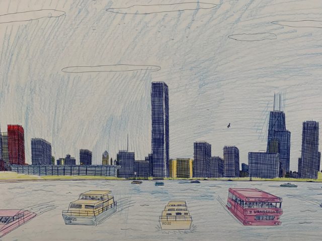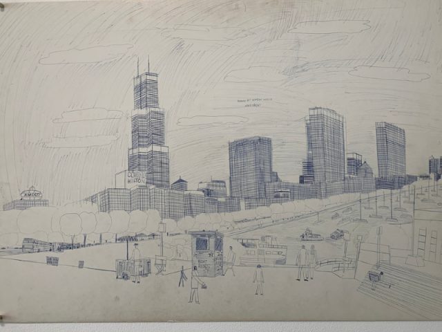 2. The Matthew Rachman Gallery featured the ballpoint pen and colored pencil sketches of another Chicago artist, Wesley Willis. Known as an artist of the streets, diagnosed with schizophrenia and a punk rock musician, he sold his drawings for $10-$20. It was only after his death that he began to receive recognition for his artwork.