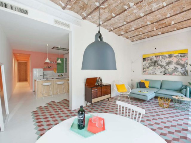 - Emphasize your floors – pattern is key! Whether through a rug made of natural materials or an ornately, brightly colored, tiled floor with intricate patterns, Barcelonan interiors don’t shy away from the bright and bold. Choose colors home to the Mediterranean (blues, greens, yellows, oranges) for an authentic feel.