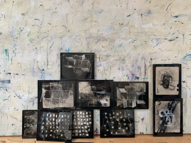 Last weekend, my friend Julie Anderson and I perused Harbor Country, MI spending a day in Sawyer, Union Pier, Lakeside, Harbert and Three Oaks. While I have been there at least four or five other times, this was a day of art, antiques, accessories and clothing shopping. We stopped at the Blue Moon Vintage Market, Judy Ferrara Gallery, Poppy Hill Vintage, Sojourn, Trilogy Antiques, One Oak Street, Alapash Home, Catalpa Antiques, Goods and Heroes, Judith Racht Gallery, Go Fish and Stockholm Objects. I bought “something” at many of these wonderful bespoke stores and galleries either for a client or for myself! The best part of the day? We met Elizabeth Coyne, a delightful artist whose studio is on the second floor of a building near Froelich’s new restaurant on the main street in Three Oaks. Elizabeth has been painting for over 35 years; her art is a contemplation on life and existence (her life and existence to be exact). While I was immediately drawn to her work, I did not immediately understand its significance. She incorporates a system of personal symbols throughout her work – storying the journey of her husband’s death and how she’s rebuilding her life. Once she pointed out the stem and explained more of her personal journey, I intuitively understood as it’s so similar to my own. I’m now the delightful new owner of six of her small black and white ink pieces that symbolize a path forward.