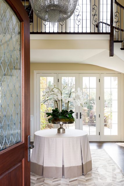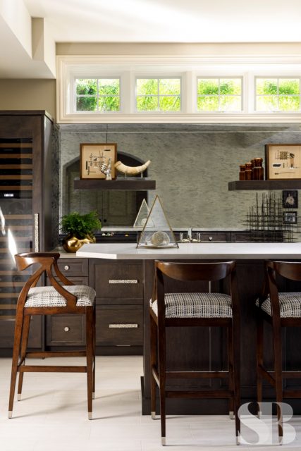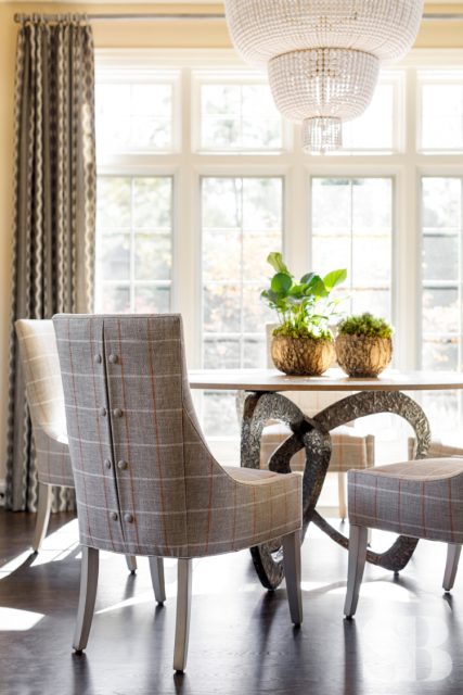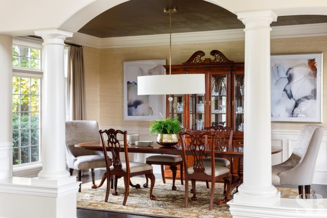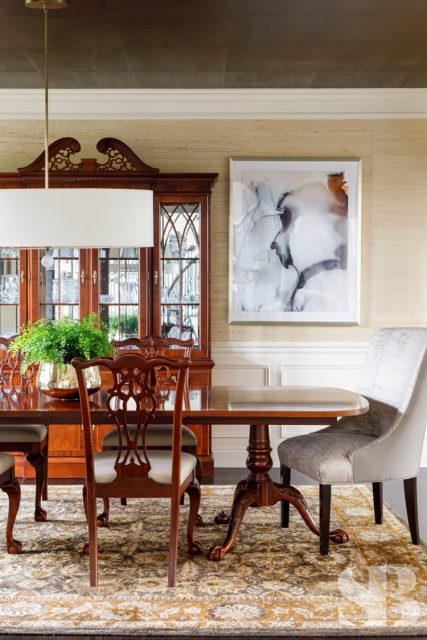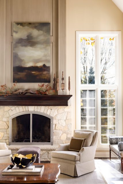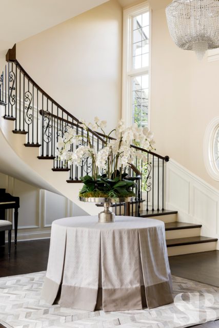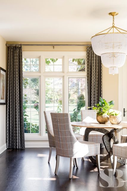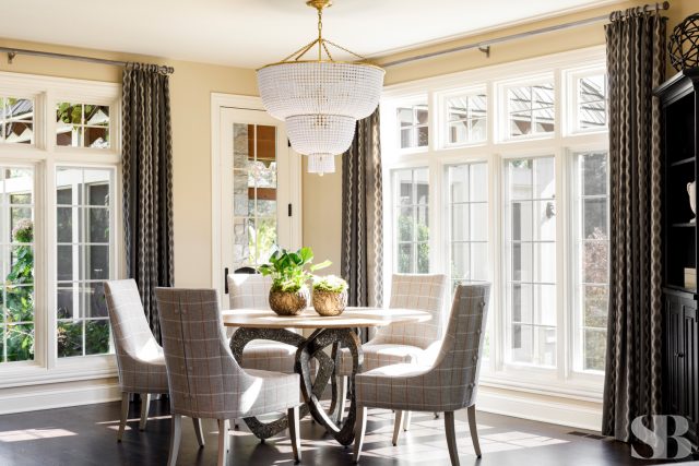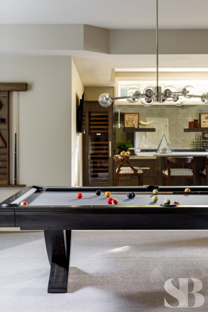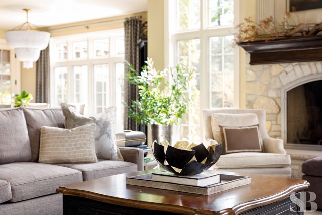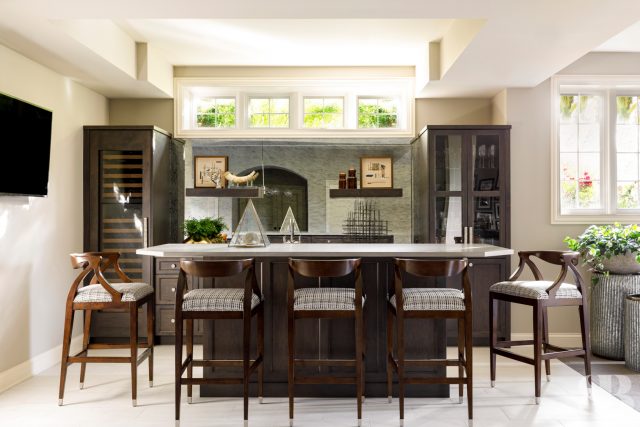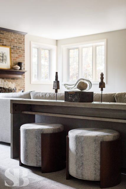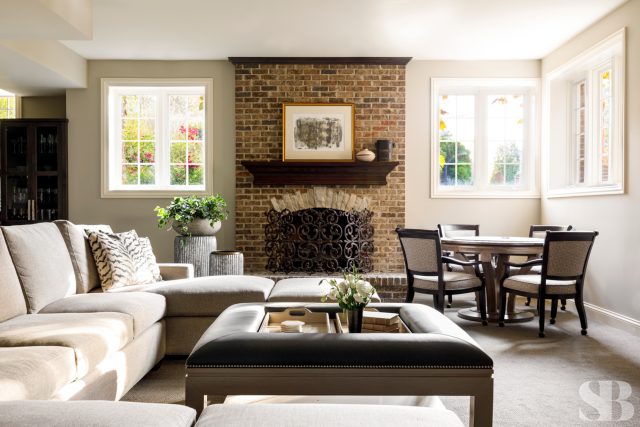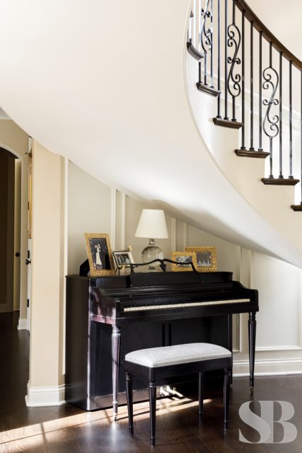 Studio Brunstrum specializes in lifestyle updates like this one – especially with one of our favorite returning clients. We initially collaborated on their family home a few years ago, maintaining the integrity of what they loved about their space, but making it work for these empty nesters after their three sons went off to college and their first jobs. Using and repurposing some of the client’s familiar and comforting pieces, we designed a more simplified look while keeping it interesting by incorporating textures and composed vignettes. A stunning entryway, with a chandelier, piano and winding staircase, hints at the surprises to follow in the rest of their home. By introducing a neutral color palette, we provided a perfect backdrop for the new transitional furnishings we added to their much-loved traditional pieces. The blended style is softer, lighter and more tactile than their former interior. Their home still has classic elegance while remaining approachable and relaxed. After a winter pipe leak caused damage to the first and second floors of their home, we were given the opportunity to re-create the original spaces they loved (with a few new updates) and create a brand new lower-level area designed with family togetherness and relaxation in mind.