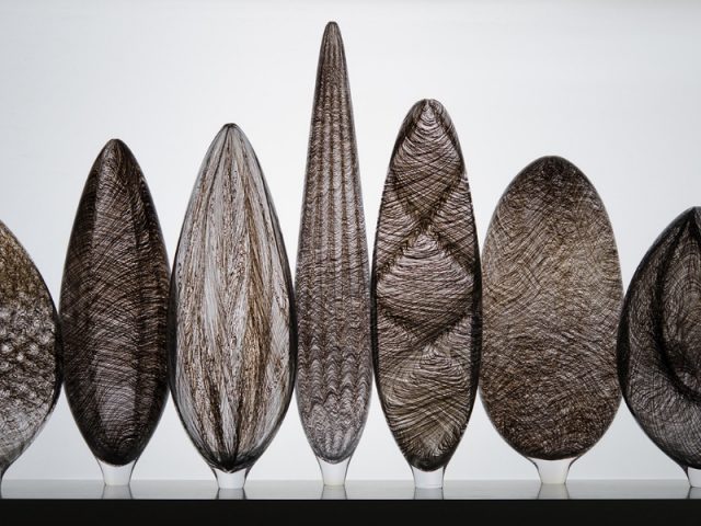 1. Duane Reed Gallery. US artist Nancy Callan. Blown and slumped glass vases with gold leaf accents “Kimono”. A glass sculptor and educator for many years, she is known for her ability to take centuries old Venetian glass techniques and turn them into something uniquely hers. While her work is bold and adventuresome, these pieces are also sophisticated and elegant, perfect for a dining room or living room.