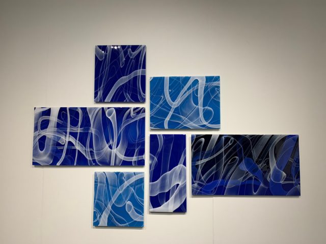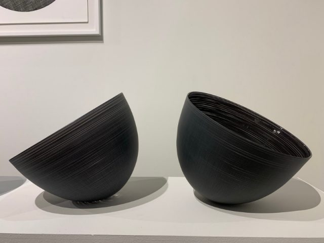 The work of two women artists, Mel Douglas and Clare Belfrage at Traver Gallery were also very intriguing. Clare’s glass vessels are mesmerizing as she uses intricate drawings as an overlay along with color combinations that come from nature. Mel’s glass pieces have engraved markings and they are very bold and geometric in shape.