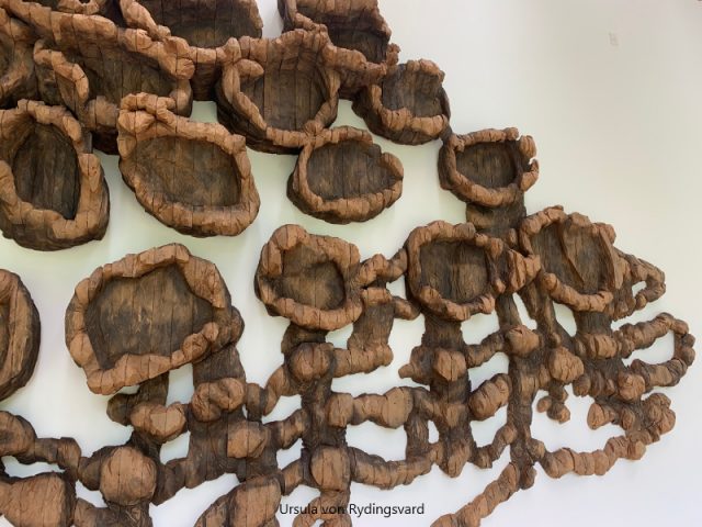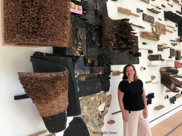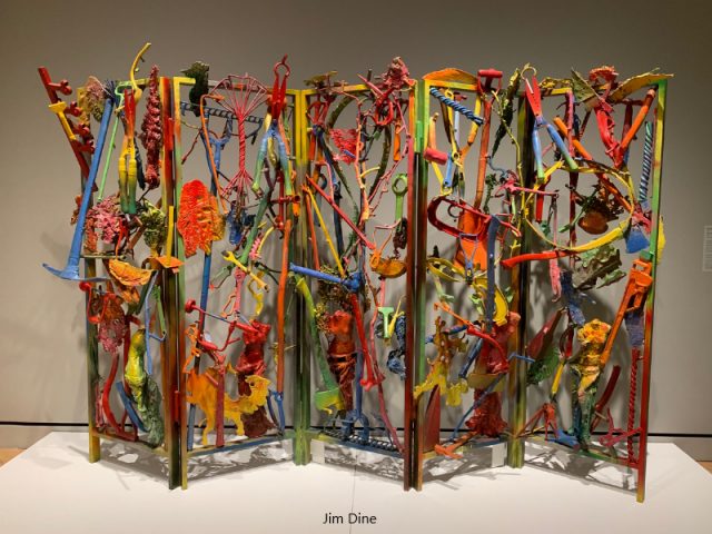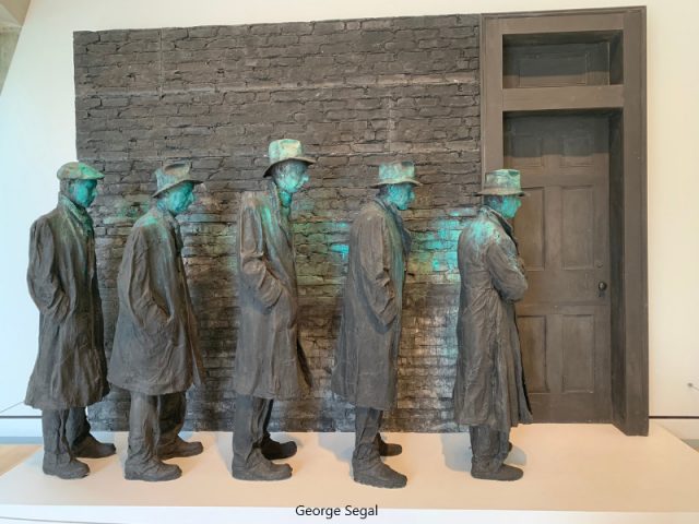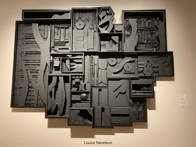 • Some of my favorite artists included: Nari Ward, Maya Lin, Julie Mehretu, Hary Bertoia, Monica Aissa Martinez, George Segal (depression Bread Line sculptures), Alfred Stieglitz, Sol LeWitt, Leonardo Drew, (sculpture wall of found objects), Ursula von Rydingsvard (sculpture wall), Karen LaMonte (glass dress), Jeffrey Gibson (a punching bag of which I saw another installation in a private art collection in NYC last fall), Fredrick Eversley (Big Red Lens of which I saw at LACMA last spring), Joan Brown, Louise Bourgeois, Neil G. Welliver,
