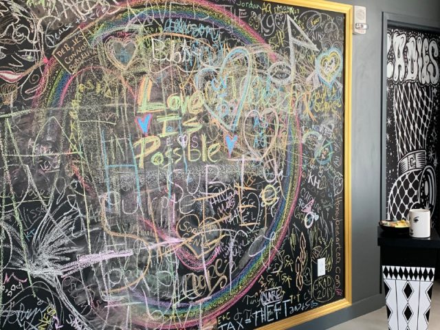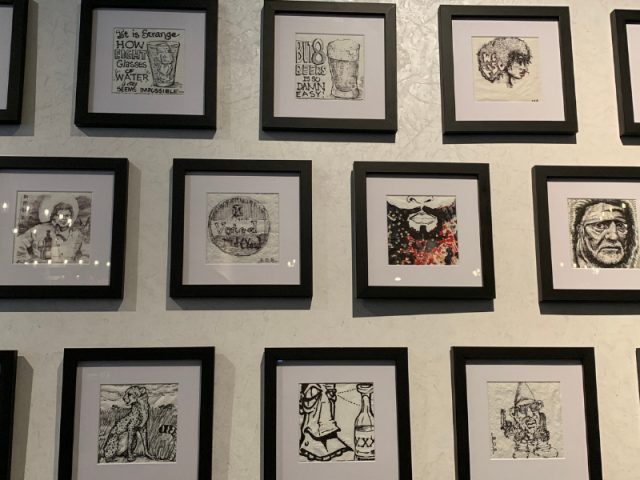 • That evening we took in a movie (Carrie is an avid movie-goer) and had dinner at the Grand Tavern located within the hotel. Chef David Burke had a whimsical take on classic American dishes and while we did not order his famous appetizer, bacon served on a clothesline, we did covet it and almost asked the table of 12 next to us for a bite! During our dinner, I became immersed in the napkin art peppering the walls of the restaurant. Within the first few weeks of opening, the hotel had a that allowed guests to draw on their paper napkins and submit their “art” to be framed. What a self-expressive statement!