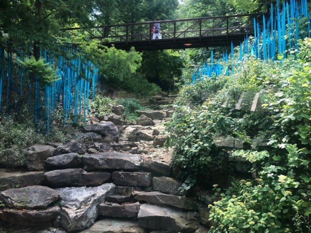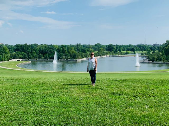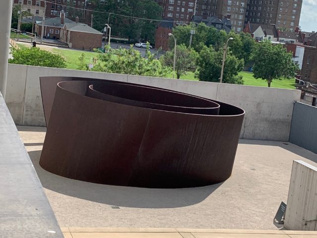 • On the morning of July 4th, we went to the St. Louis Art Museum and spent hours wandering this free museum in the heart of historic Forest Park. A gorgeous stainless steel tree sculpture by Roxy Paine titled “Placebo” was outside the entrance. Inside, we watched an art conservator patiently repairing and preserving a 19th century painted panorama that has taken 2 years and is not nearly complete! There were so many lovely works of art! Some of my favorite European artists include: Wassily Kandinsky, Amedeo Modigliani, Paul Klee, Joan Miro, Max Beckman, Eduard Vuillard, Edgar Degas, Paul Cezanne, Raul Duffy and of course, Vincent Van Gogh, Paul Monet, Gerhard Richter, Anselm Kiefer and Pablo Picasso. Among my favorite American artists were Helen Frankenthaler, Mark Rothko, Willem de Kooning, Kerry James Marshall and Kehinde Wiley. The outdoor sculpture garden can’t be missed either.