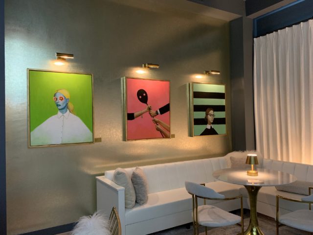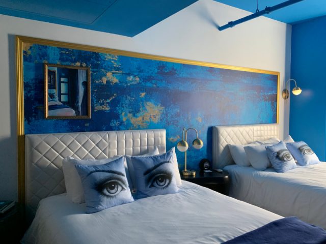 • We spent our first night at the Angad Arts Hotel in the heart of the St. Louis Grand Center Arts District. Angad is a boutique hotel built in the 1920’s as a theatre and is on the National Register of Historic Places. It embraces visual arts, literature, fashion and performance and allows guests to select the color of their room. You have four options. Red for passion, yellow for happiness, green for rejuvenation or blue for tranquility. We stayed in a Yellow Room to set the mood for the rest of our trip! After a cocktail and late lunch on the rooftop overlooking the city and the Gateway Arch, I had the good fortune to meet and chat with the curator, Vanessa Rudloff (who also happens to be a fabulous photographer herself). The Angad features work from artists that live within 200 miles of St. Louis. Some of my favorite local artists include: Jo Jasper Dean (the saturated color on her animals!), Jason Atkinson (his installation of doors; those with colorful doorknobs open to reveal a secret inside!) and Cecilia Donaldson (her dream like paintings draw you in).